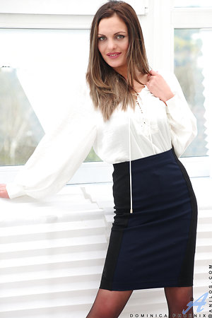 Lady takes off elegant dress and masturbates in porn pics